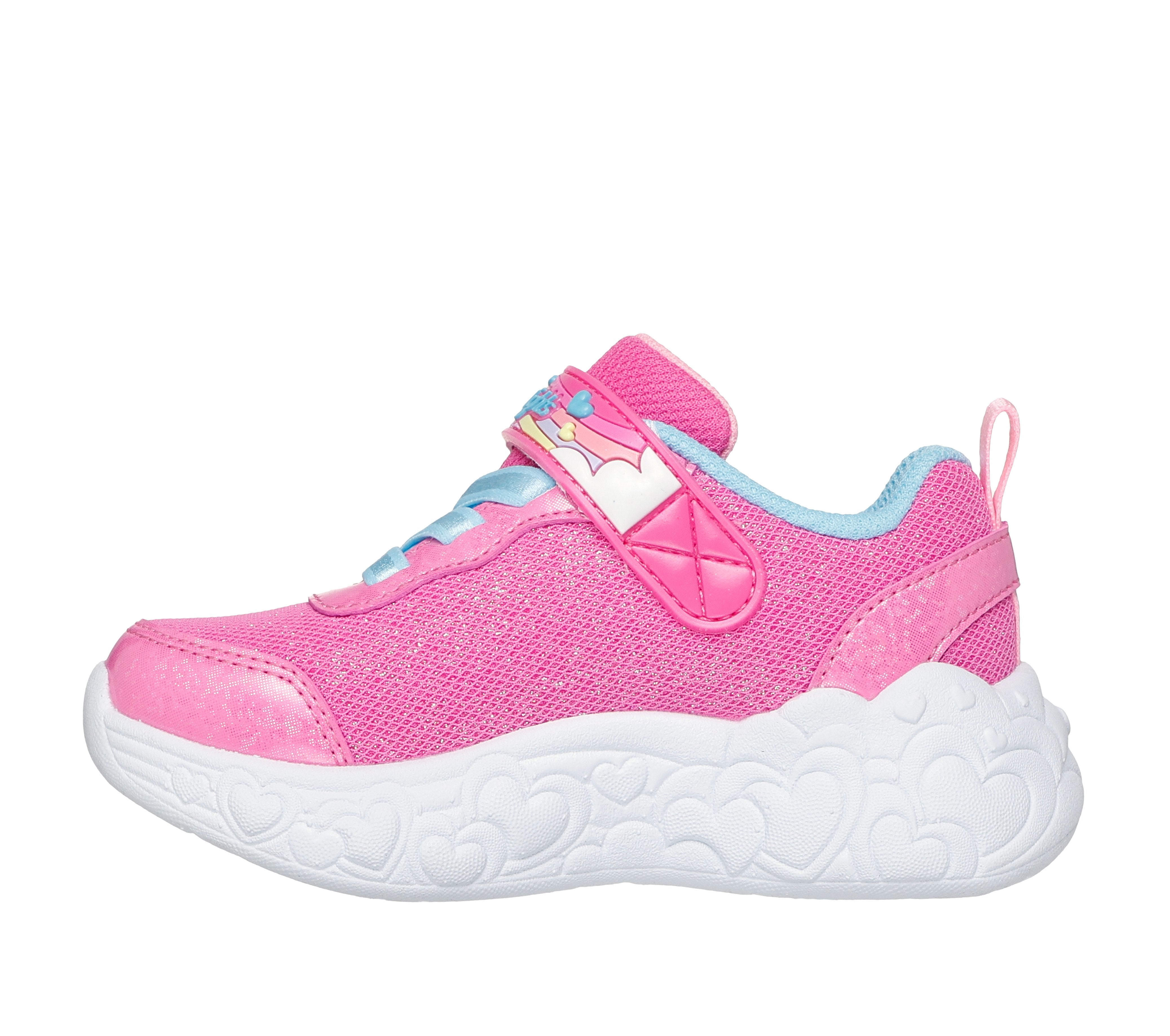 Sporty style gets lit-up and lovable with Skechers S-Lights®: Eternal Heart Lights. This lighted design features a sparkle mesh and synthetic glitter upper with stretch-laced front, and a Skechers adaptive closure.